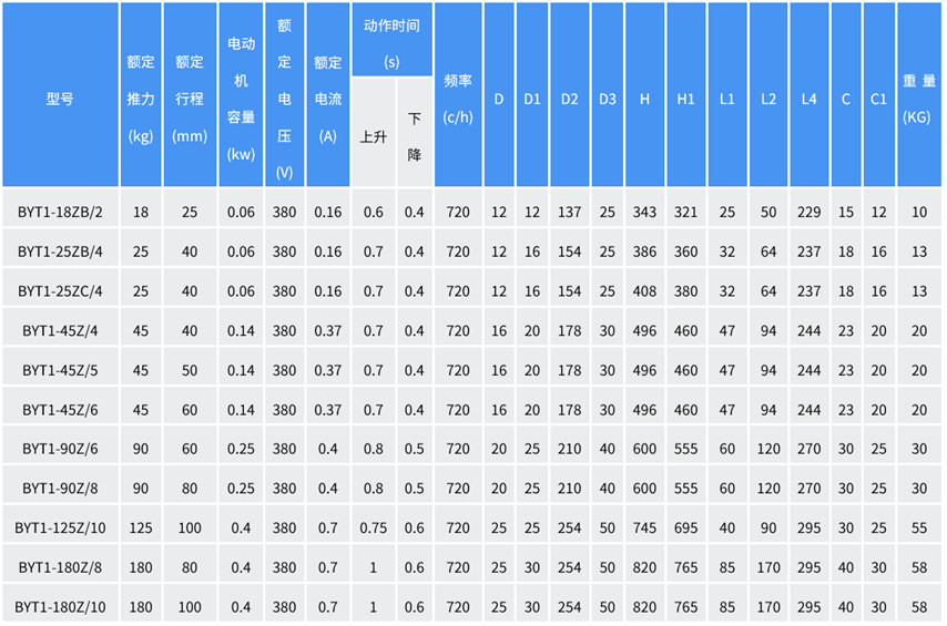 BYT1隔爆型電力液壓推動器適用于夾緊裝置、閥門、閘門、唧筒等的驅(qū)動和控制裝置。主要作為電力液壓鼓式制動器的松閘使用,也可通過各種形式的杠桿裝置做各種不同的運(yùn)動。